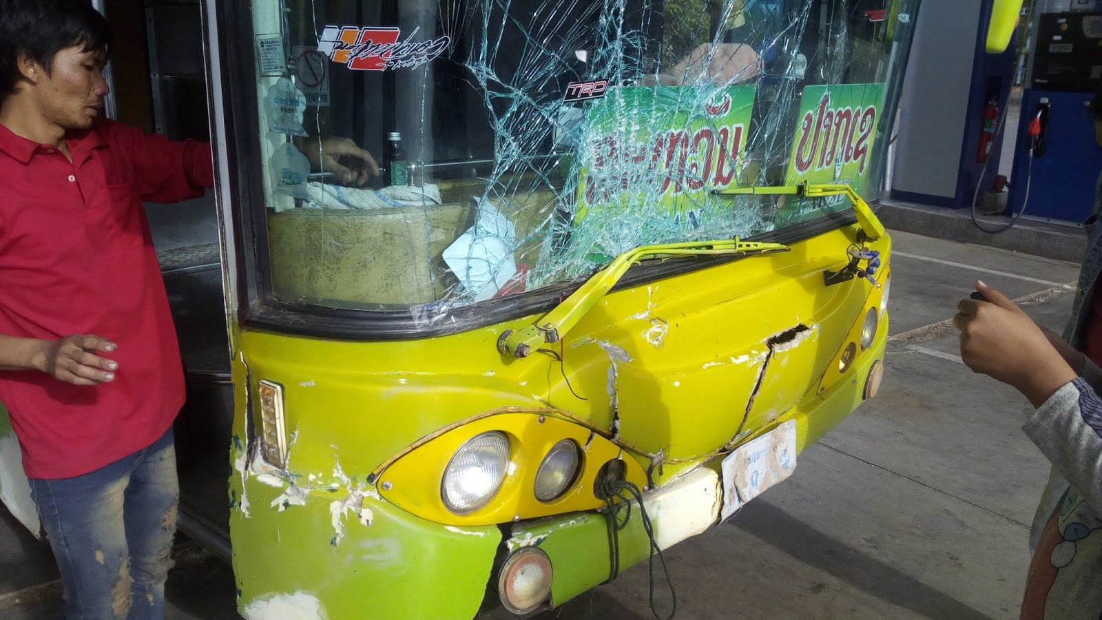 Shvatio sam da mi vožnje u noćnim busevima koji imaju ležajeve umjesto sjedala ne pašu. Ležajevi su dugački oko 170 cm, tako da se niti u jednom trenutku ne možeš ispružiti ako si viši od toga, a taj ležaj bi u pravilu trebao biti za dvoje ljudi pa ako je bus popunjen, završit ćeš u preuskom i prekratkom krevetu s neznancem. I onda takav bus naplaćuju i do 50% više od običnog. Odlučio sam zato za Pakse uzeti večernji bus sa sjedalima, koji kreće s Južnog autobusnog kolodvora koji se, logično, nalazi sjeverno od grada. Međutim, uskoro se ta odluka pokazala lošom. Nakon tri sata vožnje, usred mraka i daleko od naseljenog mjesta, vozač je naglo počeo kočiti i onda se čuo i osjetio tup udarac u prednji dio autobusa. Ostao sam u busu oko pet minuta, međutim sve je više ljudi počelo izlaziti van pa sam izašao i ja. Teško je bilo vidjeti po mraku kakva je šteta na busu, niti sam vidio šta smo to točno udarili (pretpostavljam neku životinju), ali osjećao sam da nećemo tako brzo krenuti dalje, ako uopće i nastavimo vožnju s ovim busom. Neki ljudi su stajali sa strane, neki spavali u busu, a neki gledali šta vozači pokušavaju napraviti ne bi li nastavili vožnju. Srećom, nakon dva i pol sata krenuli smo dalje. Vozili smo sporije jer je vjetrobransko staklo bilo napuknuto, a s obzirom da je čak i ova glavna državna cesta koja prati dolinu Mekonga bila u lošem stanju, postojala je opasnost da se pukotine prošire. U zoru sam shvatio da u prtljažnom prostoru prevozimo i pijetla jer se stalno čulo prigušeno kukurikanje negdje u busu. Kada smo nakon 17 sati, umjesto uobičajenih 12, napokon došli na autobusni kolodvor u Pakseu, imao sam šta vidjeti. Kod nas definitivno ne bi nastavili vožnju s ovakvim busom: